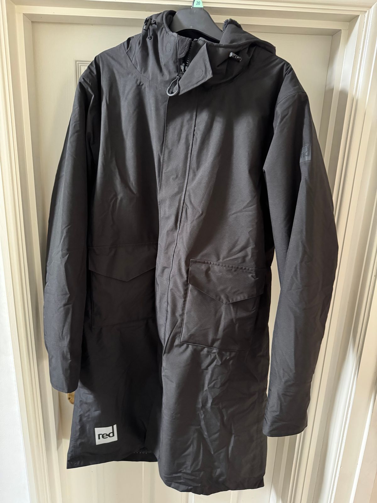 Bought this jacket due to it being slimline and I did not want a large changing robe/jacket. I am 6ft4 and this is a perfect size, nice long sleeves and is great at keeping me warm and dry while walking my dog. The hood is excellent with enough room for a hat or cap to be warm underneath. The jacket seems to be well made with a zip and press studs to keep out the weather.