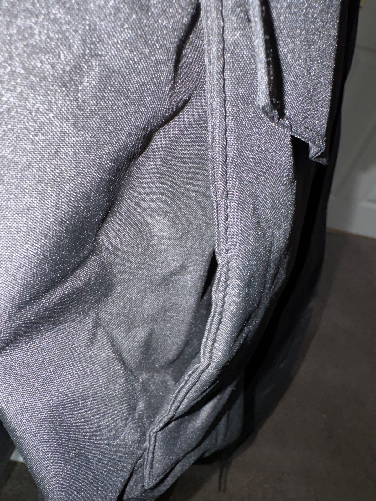The fabric is not overly thick and with the very strong press studs, I hope that the material holds up to constant use and the fabric does not rip near the studs.